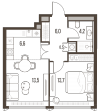 | Однокомнатная | 35.4 - 69.5 м2 | до 429075 руб. кв. м. |