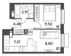 | Однокомнатная | 31.7 - 43.35 м2 | до 127105 руб. кв. м. |