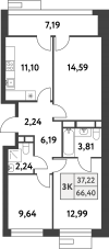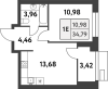 | Однокомнатная | 27.3 - 37.6 м2 | до 220473 руб. кв. м. |