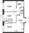 | Двухкомнатная | 44.3 - 59.6 м2 | до 202607 руб. кв. м. |
