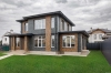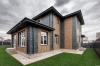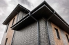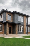 Фасад дома сделан из глиняной клинкерной плитки. Крыша мягкая черепица. Установлен забор по всему периметру из штакетника, автоматические ворота, калитка, площадка для двух машин.