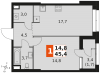 Продаётся 1-к квартира 418 общей площадью 45.4 кв.м на 12-м этаже 26 этажного дома. Отделка Whitebox.