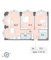 Площади: общая: 71,00м2