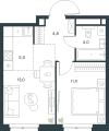 Общая площадь: 42.40 кв. м   Цена: 22 824 300.00 Р за объект