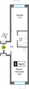 | Однокомнатная квартира (евродвушка) с просторной кухней-гостиной в жилом комплексе комфорт-класса "Никольский квартал Отрада". Планировка выполнена по современным стандартам и отличается повышенным ко... >> | |